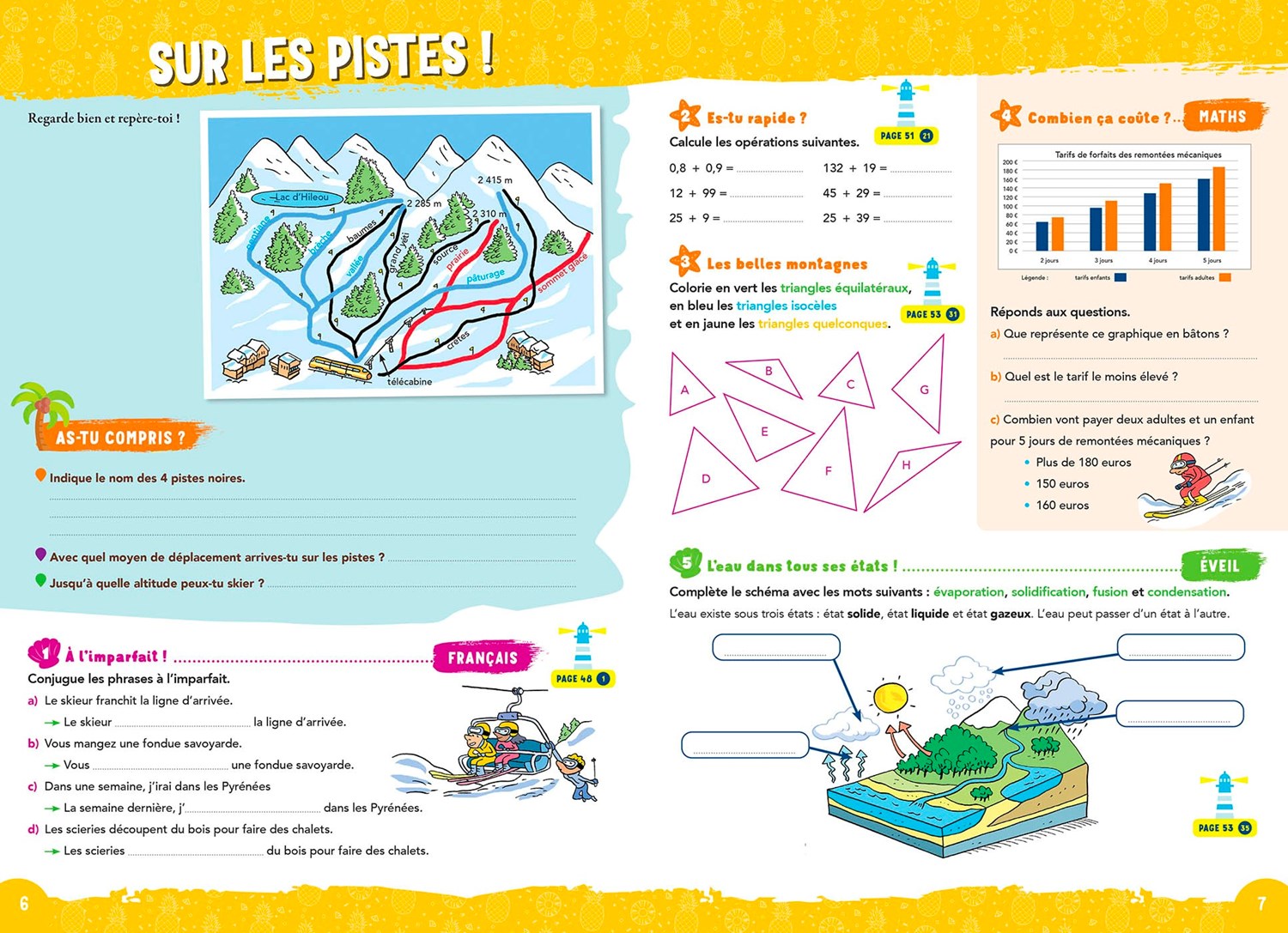 Pour varier les plaisirs, le cahier comprend également des pages de jeux, des textes de lecture et des documents variés, ainsi que des stickers pour personnaliser ses cahiers. Les corrigés détaillés permettent de vérifier facilement les réponses et de progresser en toute autonomie.