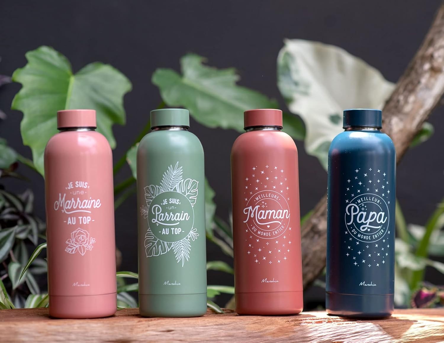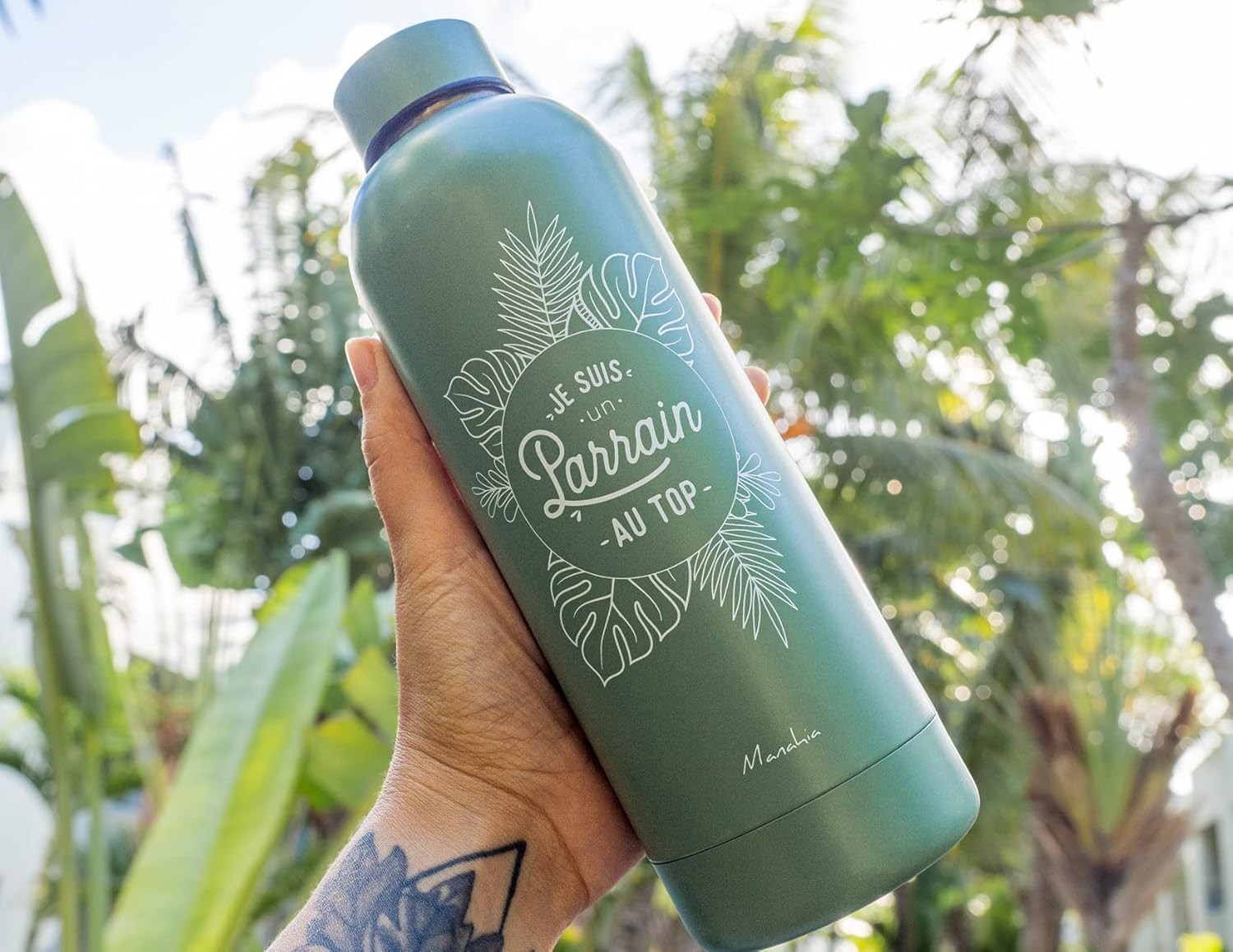 Une jolie attention pour un parrain exceptionnel 💛 Cette bouteille isotherme en acier inoxydable est le cadeau parfait pour lui rappeler combien il est formidable. En savoir plus >