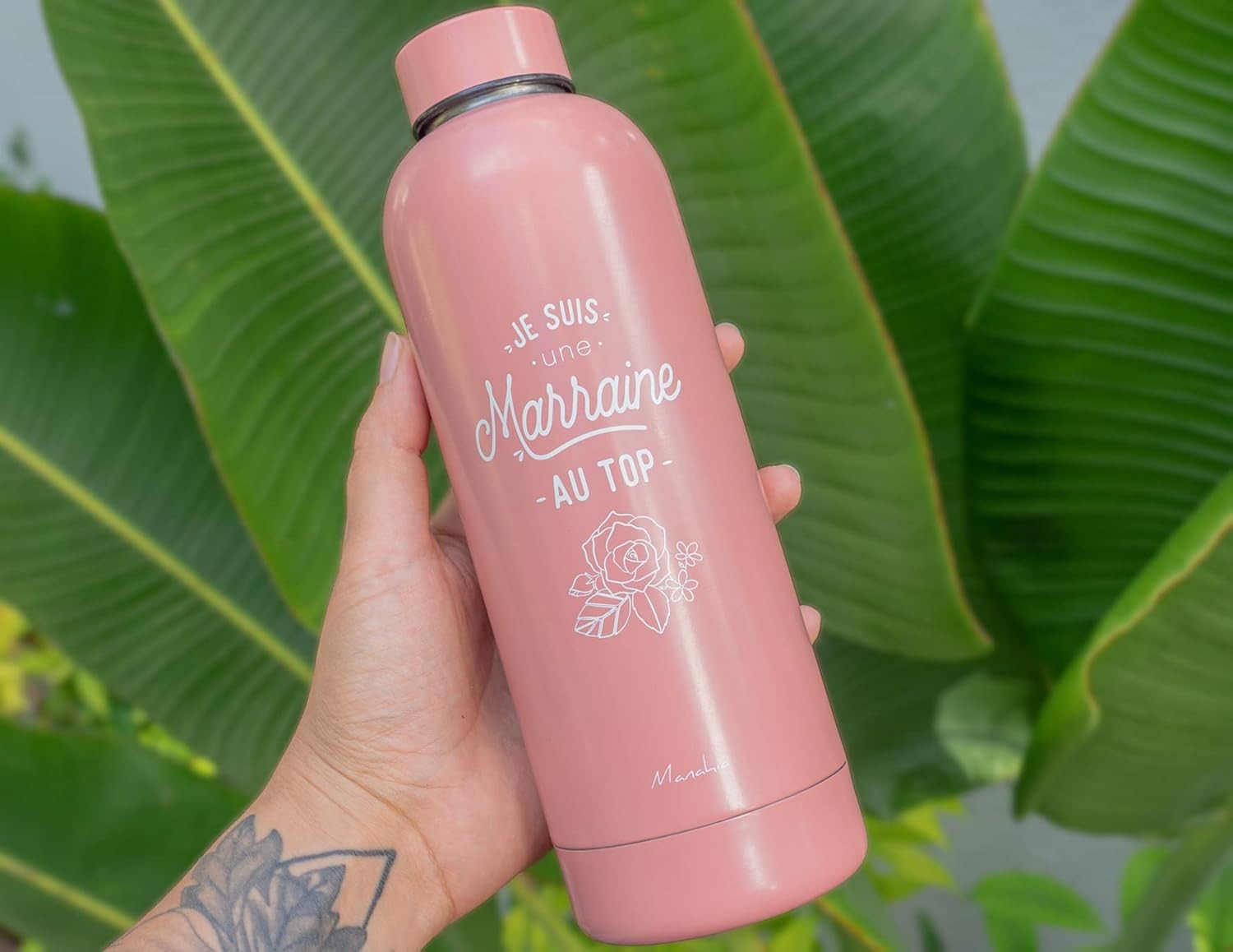Une jolie attention pour une marraine exceptionnelle 💛 Cette bouteille isotherme en acier inoxydable est le cadeau parfait pour lui rappeler combien elle est formidable. En savoir plus >
