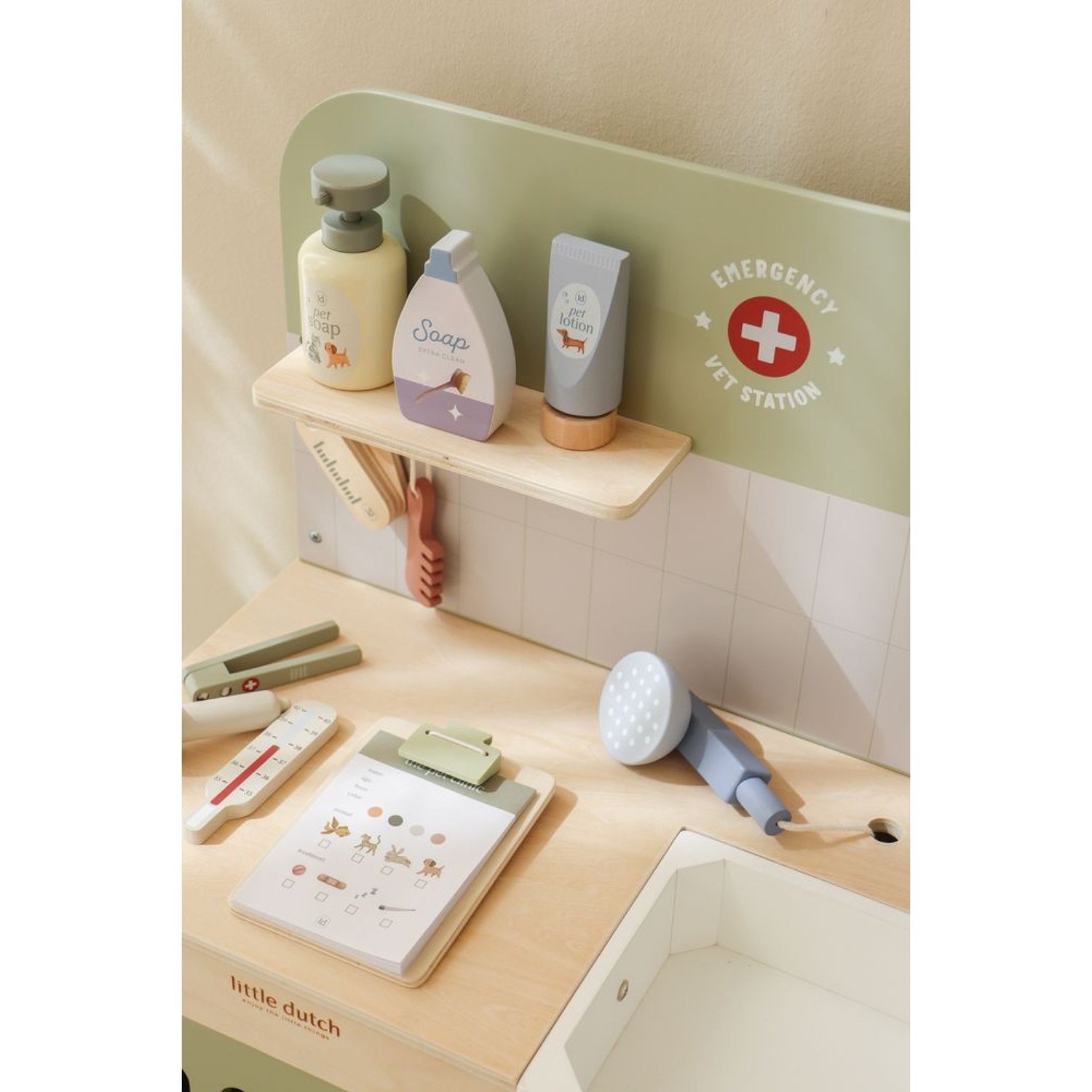 Découvrez le cabinet de vétérinaire en bois FSC de la marque Little Dutch, un jouet classique, intemporel et plein de douceur, parfaitement fidèle à l’univers coloré et poétique de la marque. Conçu pour stimuler le jeu de rôle, il invite les enfants à prendre soin de leurs petits animaux tout en développant leurs compétences motrices.