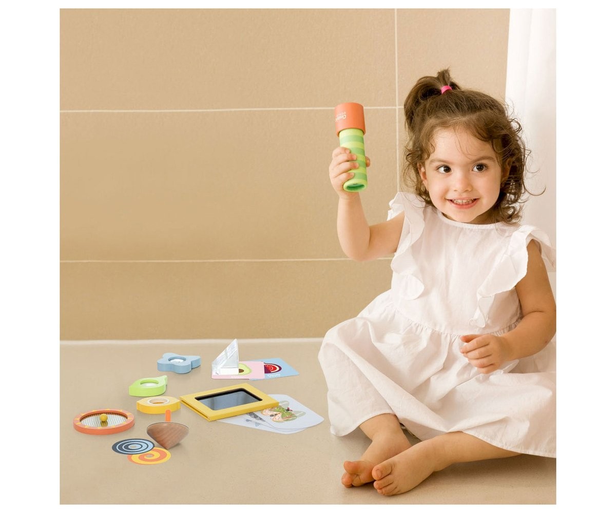 Entre kaléidoscope, prisme et accessoires surprenants, chaque élément invite à explorer, observer et comprendre les effets visuels de façon ludique. Les couleurs changent, les formes se transforment… et la curiosité s’éveille naturellement 💫