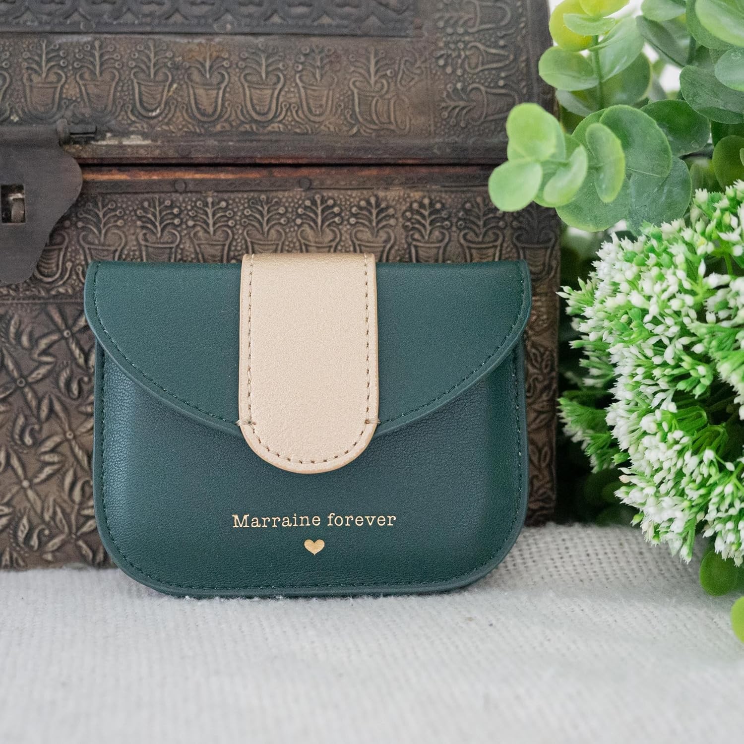 Idéal pour compléter une demande de marraine ou pour gâter une marraine déjà formidable. Élégant et pratique, il permet de ranger cartes, billets et monnaie tout en restant compact pour se glisser facilement dans un sac ou une poche.