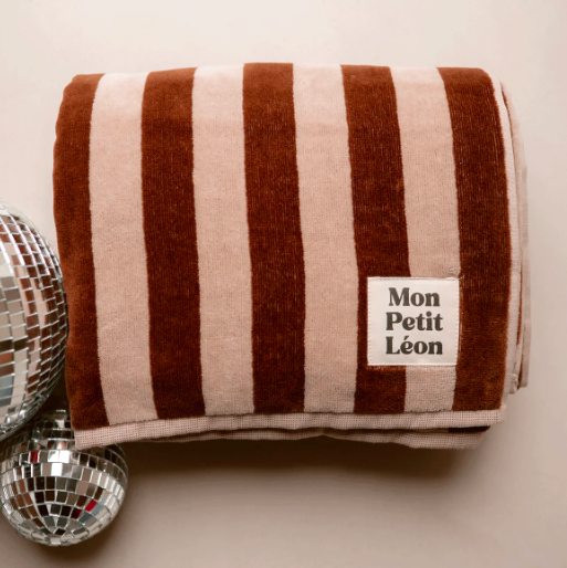 Apportez une touche naturelle et élégante avec cette serviette de bain rayée aux tons marron et beige, le cadeau idéal à offrir… ou à s’offrir pour se faire plaisir.