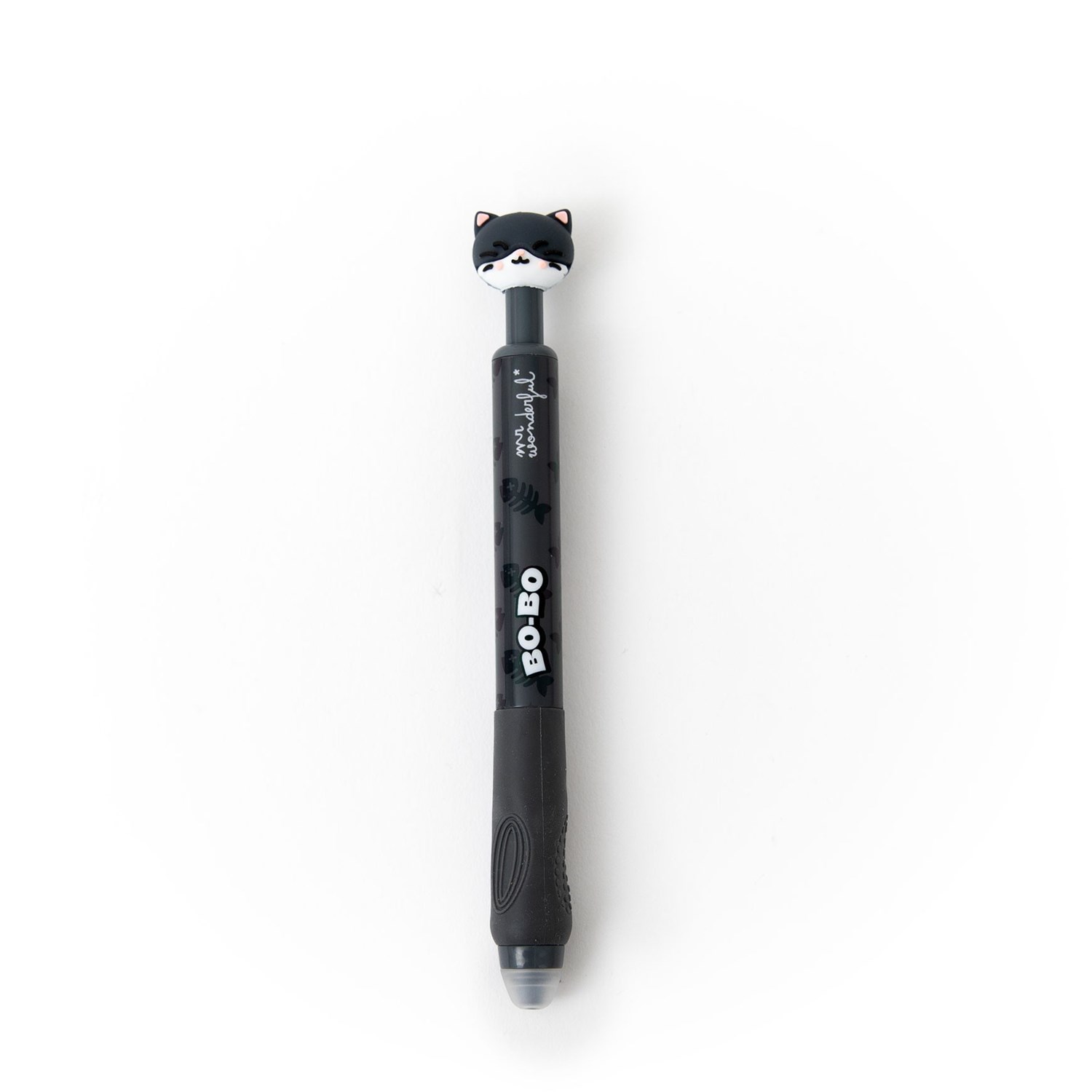 Stylo effaçable Bo-Bo Click à l’effigie d’un adorable chat, accompagné du message :