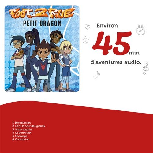 Plongez dans l’univers dynamique et passionnant de Foot 2 Rue et retrouvez vos héros préférés à travers 4 épisodes tirés de la série animée, pleins d’action, d’amitié et de suspense.