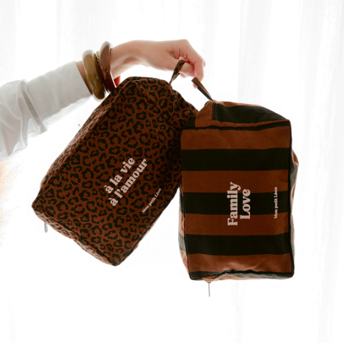 TROUSSE DE TOILETTE COTON - LEOPARD FONCE A LA VIE A L'AMOUR
